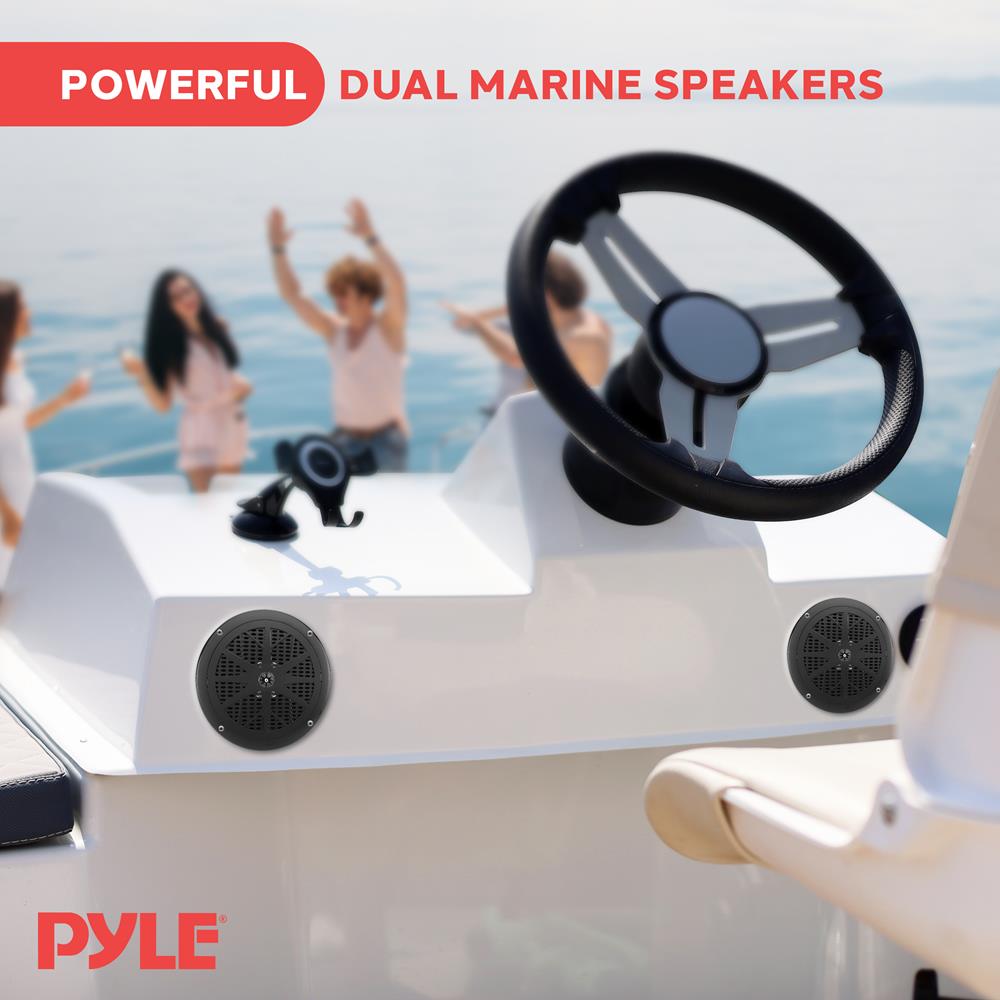 Pyle’s Hydra series speakers are waterproof and designed for use in your boat, on the dock, by the pool, or simply mounted outside. They’re designed with rust-proof mesh covers for quality protection. The PLMR61B is a pair of 120-watt, 6.5” two-way, full-range speaker suitable for marine use. These black speakers are equipped with a polypropylene cone with cloth surround and 1” aluminum voice coil for accurate sound reproduction. The molded ABS plastic basket keeps your sound distortion-free. Package includes mounting hardware and wires.