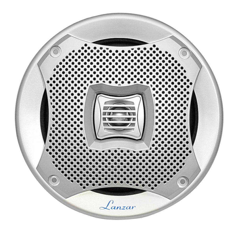 Lanzar's Mariner series of speakers are waterproof and designed for use in your boat, on the dock, by the pool, or simply mounted outside. They're designed with a water-resistant construction to keep the rust out. The AQ6CXS includes two silver 6.5' full-range speakers suitable for marine use. They're rated at 400 watts for big power. The 1' high temperature Kapton voice coil accurately reproduces low and mid-range frequencies, while the 0.5' superior dome tweeter hits the high frequencies. The molded ABS plastic basket keeps your sound distortion-free. Package includes custom grills, mounting and installation hardware. Color: silver.