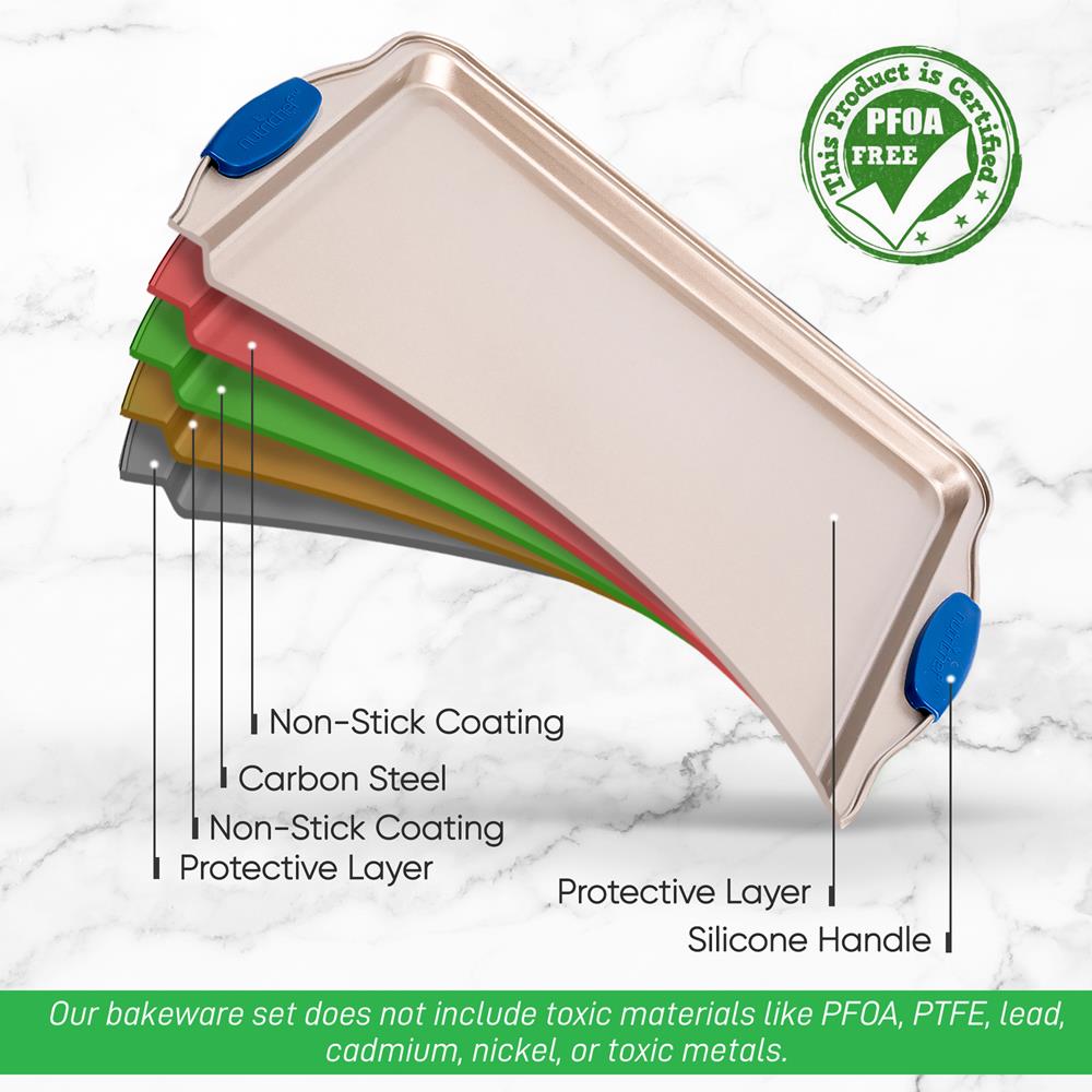 - Carbon Steel Bakeware with Blue Silicone Handles