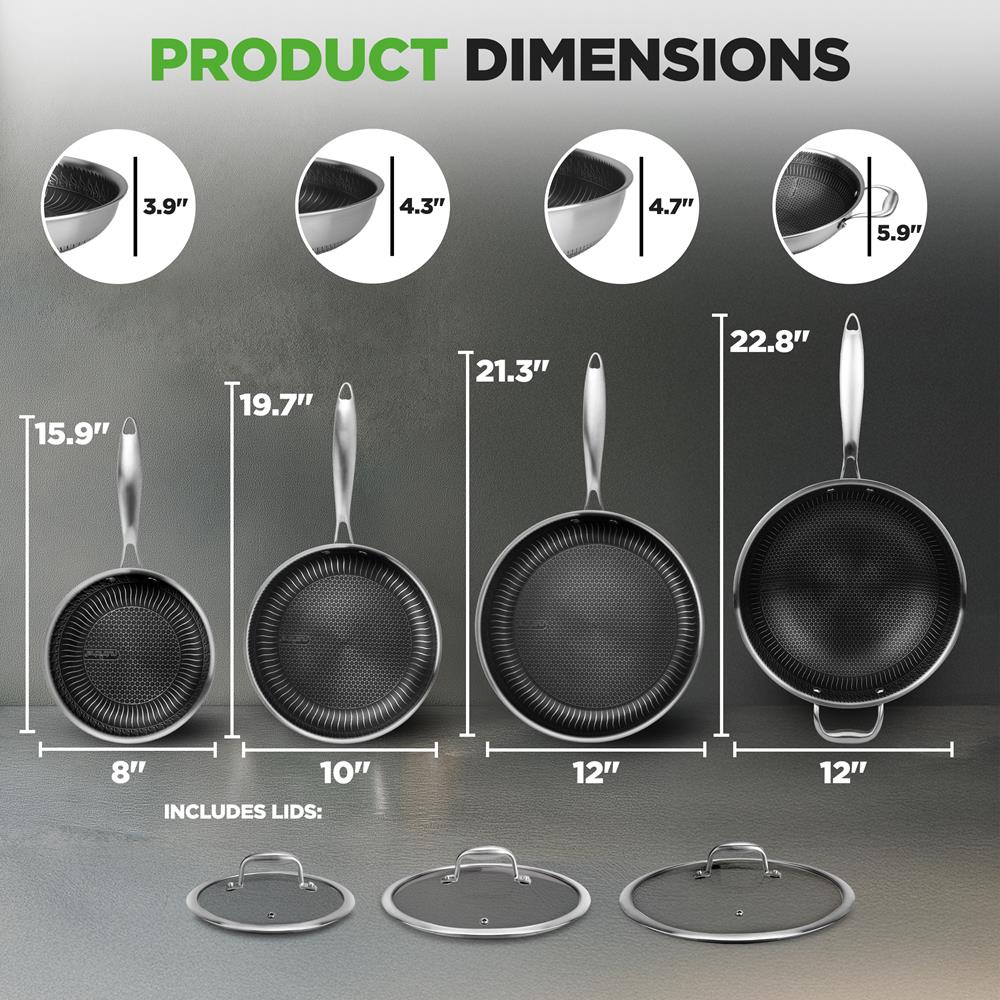 - Medium Fry Pan Size (L x W x H): 19.68’’ x 10.82’’ x 4.33’’ -inches (with Lid & Handle)