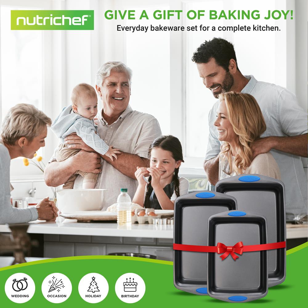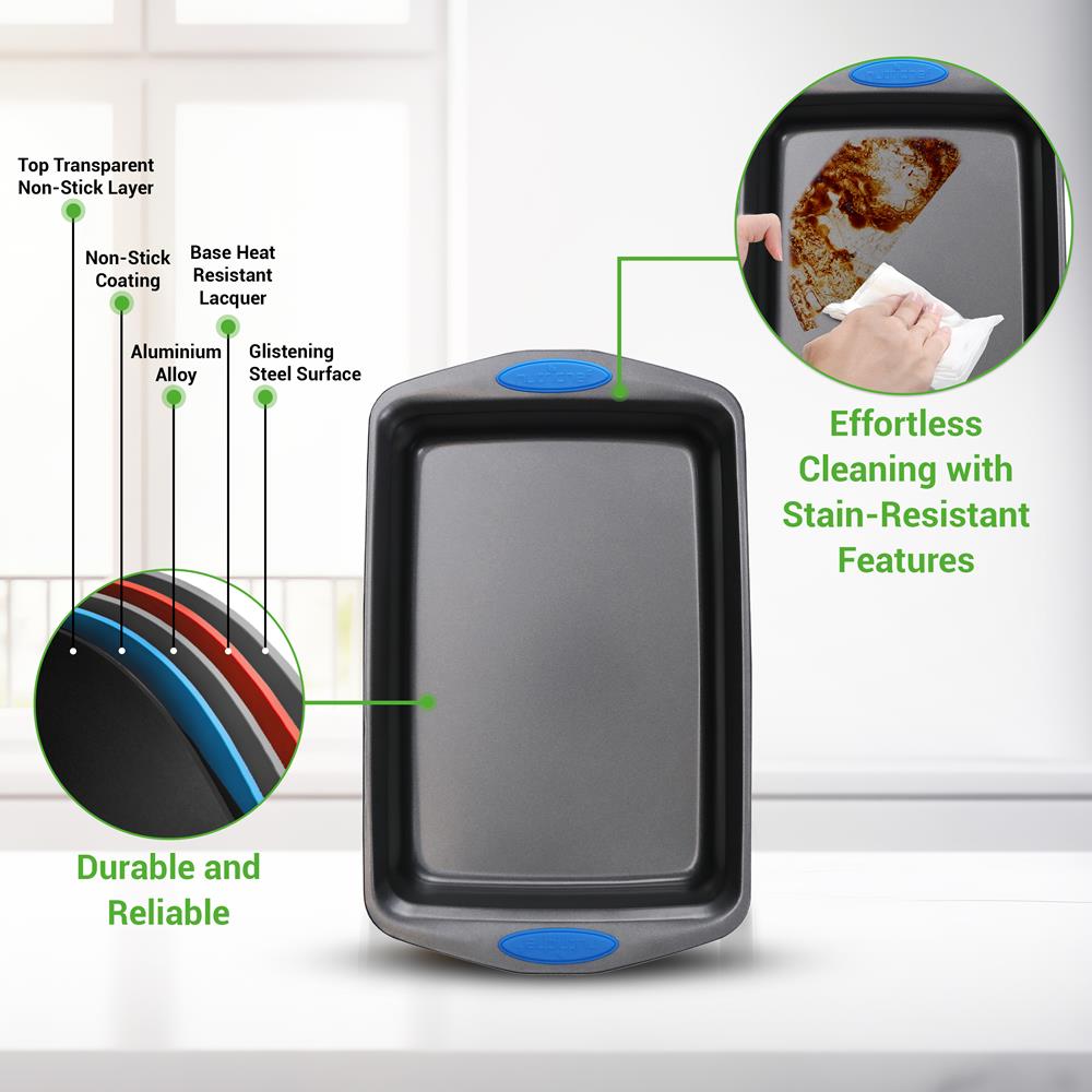 - Flexible & Nonstick Carbon Steel Bakeware Set With Blue Silicone Handles