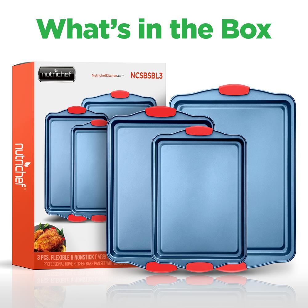 - Flexible & Nonstick Carbon Steel Bakeware Set With Red Silicone Handles