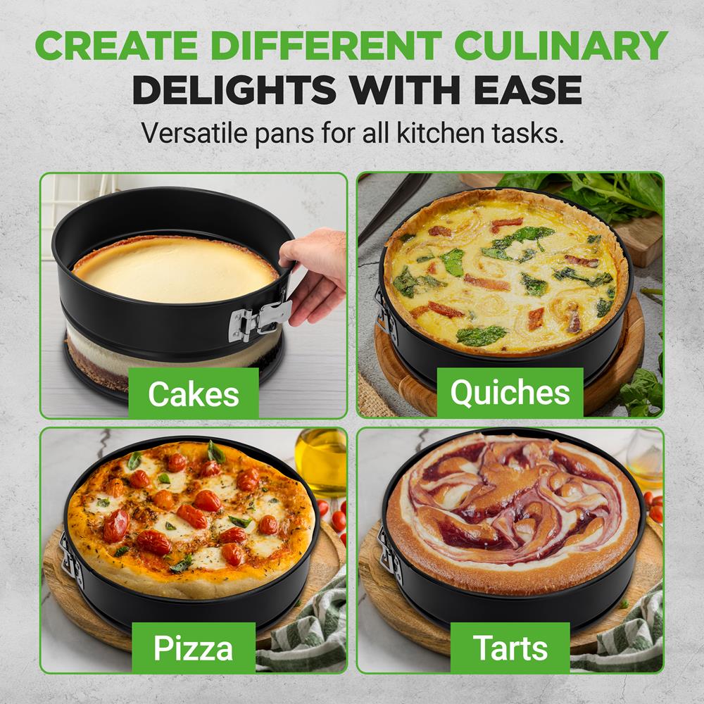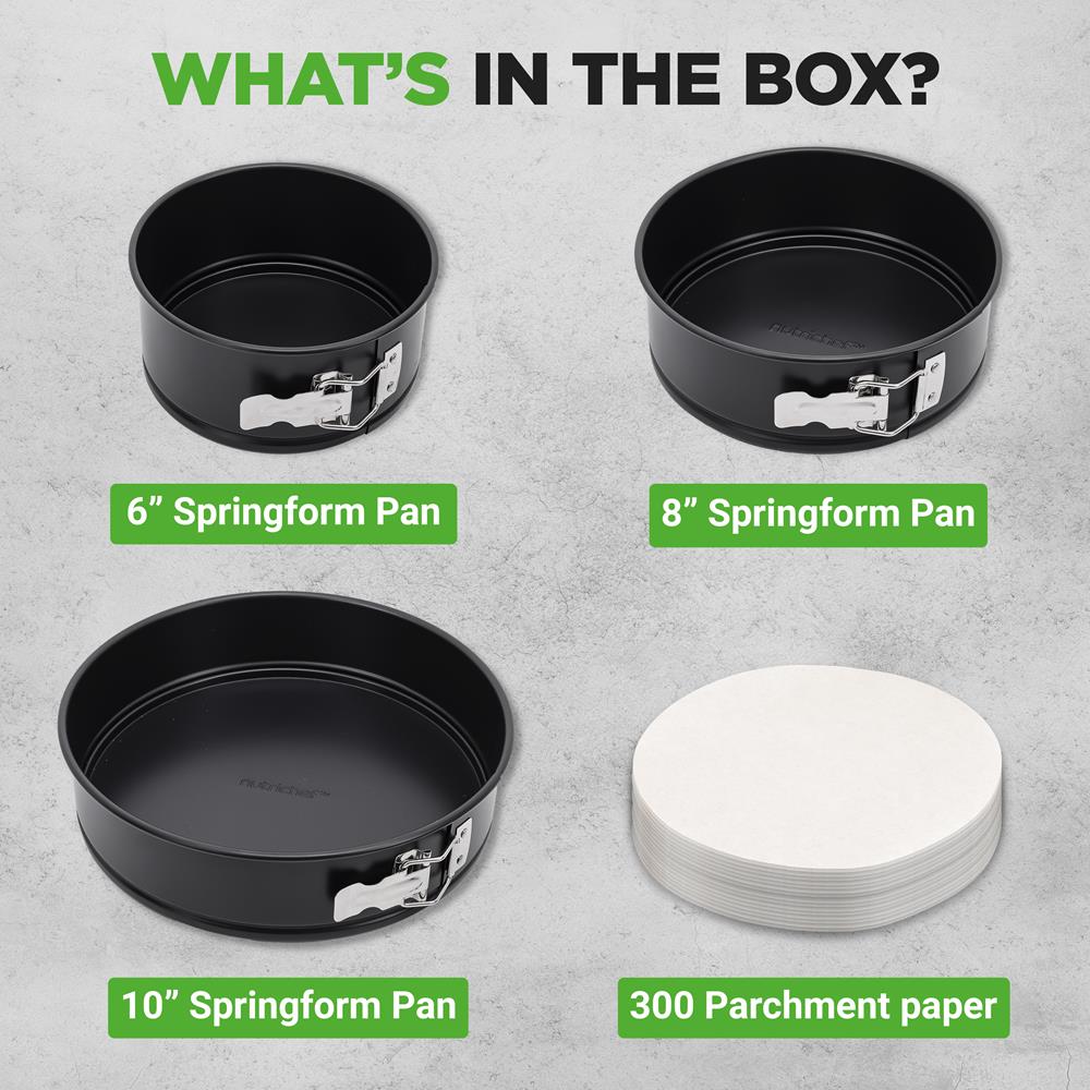 - 10” Springform Pan Dimensions (L x W x H): 10” x 10” x 2.6” -inches