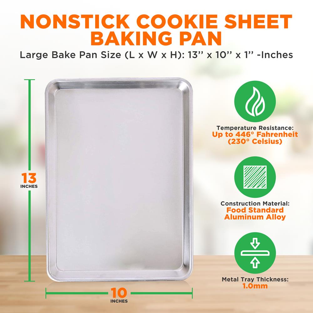 - Large Bake Pan Size (L x W x H): 13’’ x 10’’ x 1’’ -inches