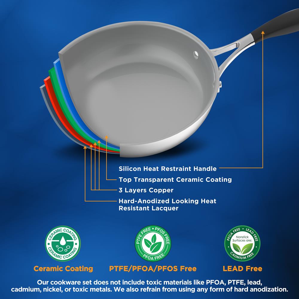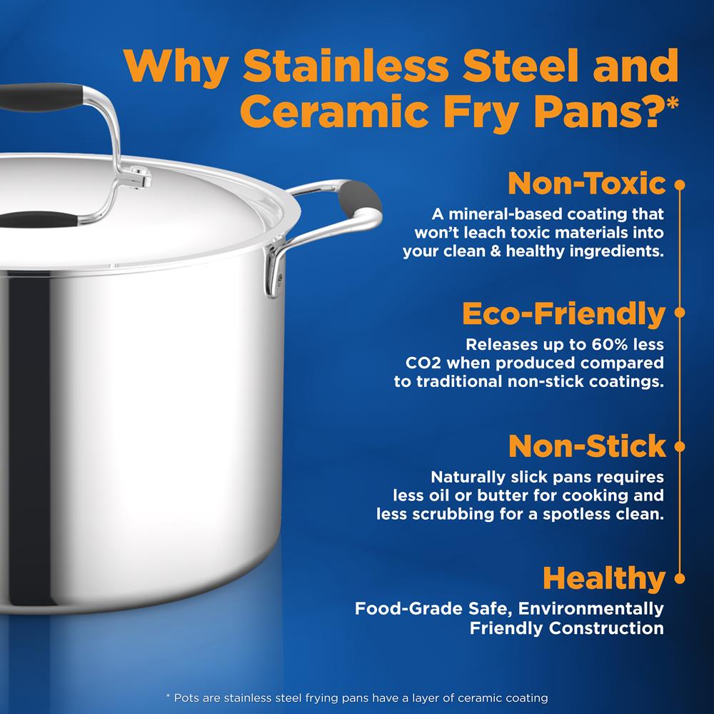 - Frypan Interior Coated with Durable Ceramic Non-Stick Coating