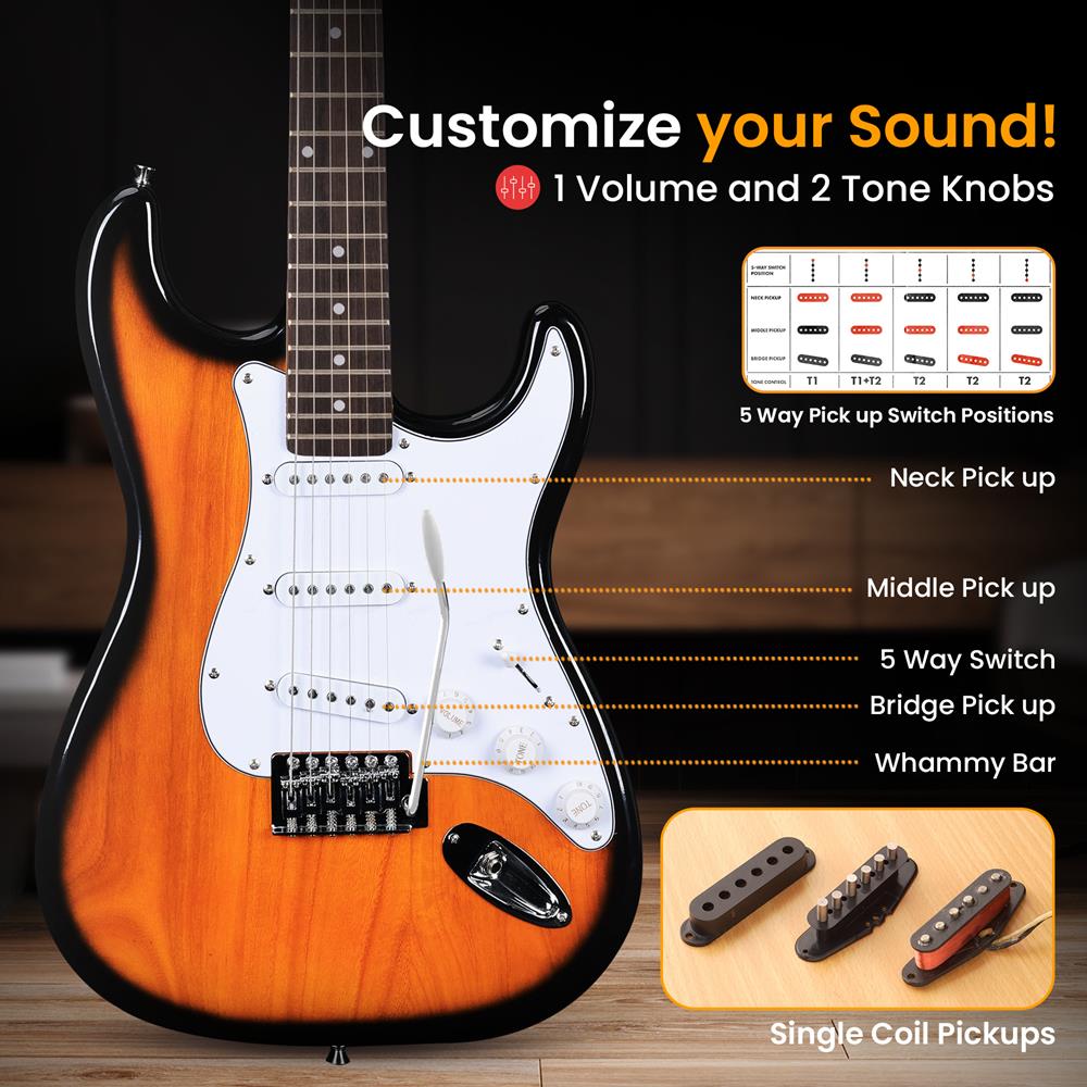 Electric Guitar Kit, Beginner Bundle, Paulownia Wood, Sun Burst