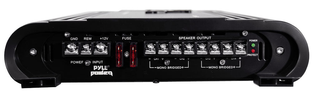When power isn't enough, you need Pyle Power. This four-channel, 4000-watt power supply is bridgeable. It's equipped with everything you've come to expect from quality car amplifiers. The RCA ports are silver-plated for eliminating signal loss. A subsonic filter allows low-end interference to be cut, so your speakers will always be delivered the highest quality audio. The MOSFET pulse width modulation power supply allows for a clean, distortion-free signal to your speakers. To keep both your car and the amplifier safe, this model is equipped with thermal, overload, and short circuit protection. So when what you need is power, trust Pyle Power.