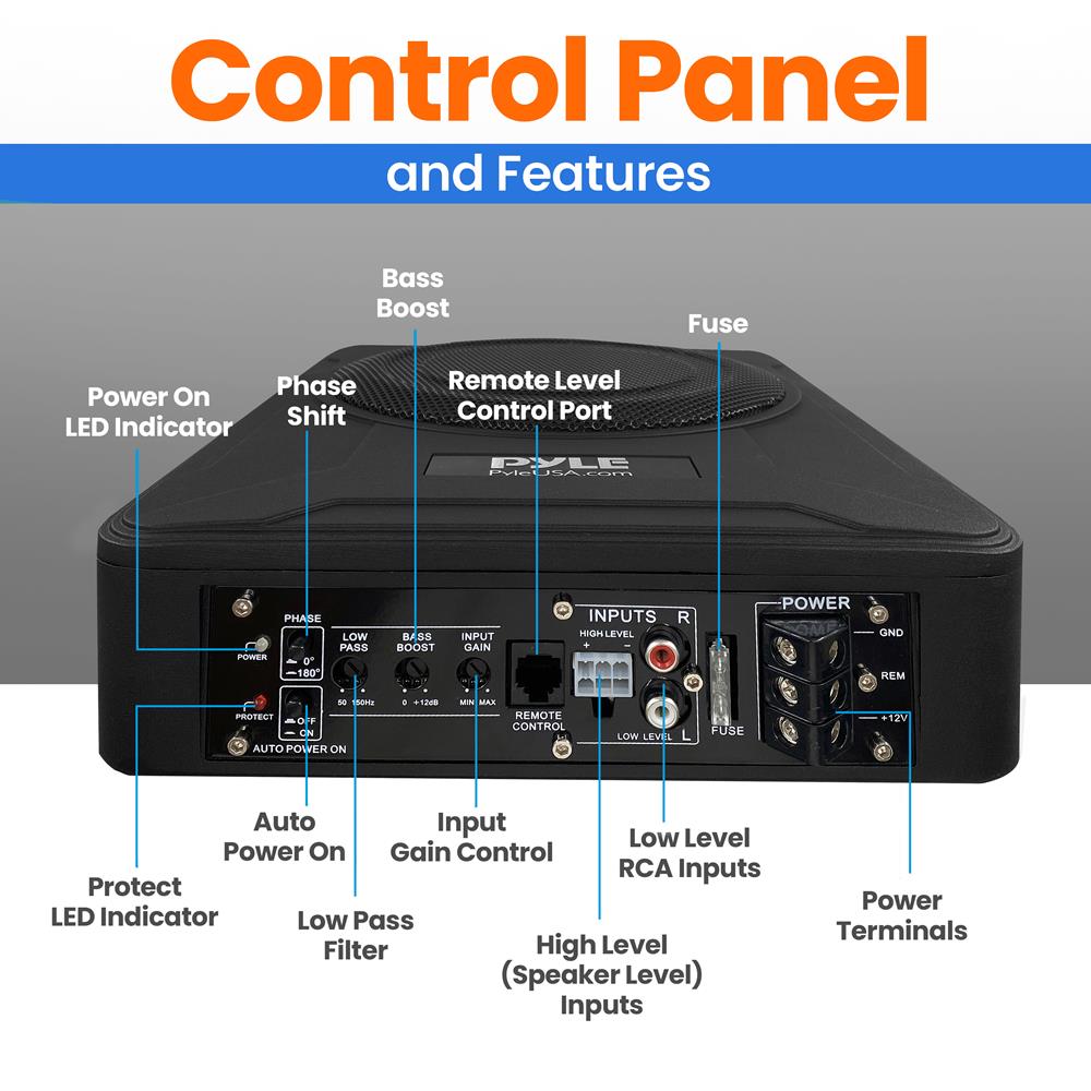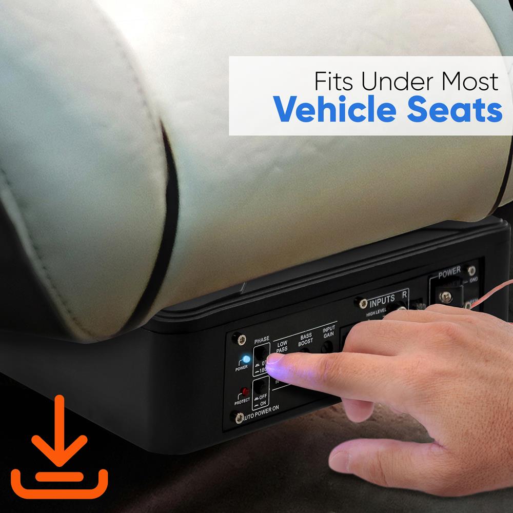 8" 600W Slim Car Subwoofer System - Built-in Amp, Underseat Install