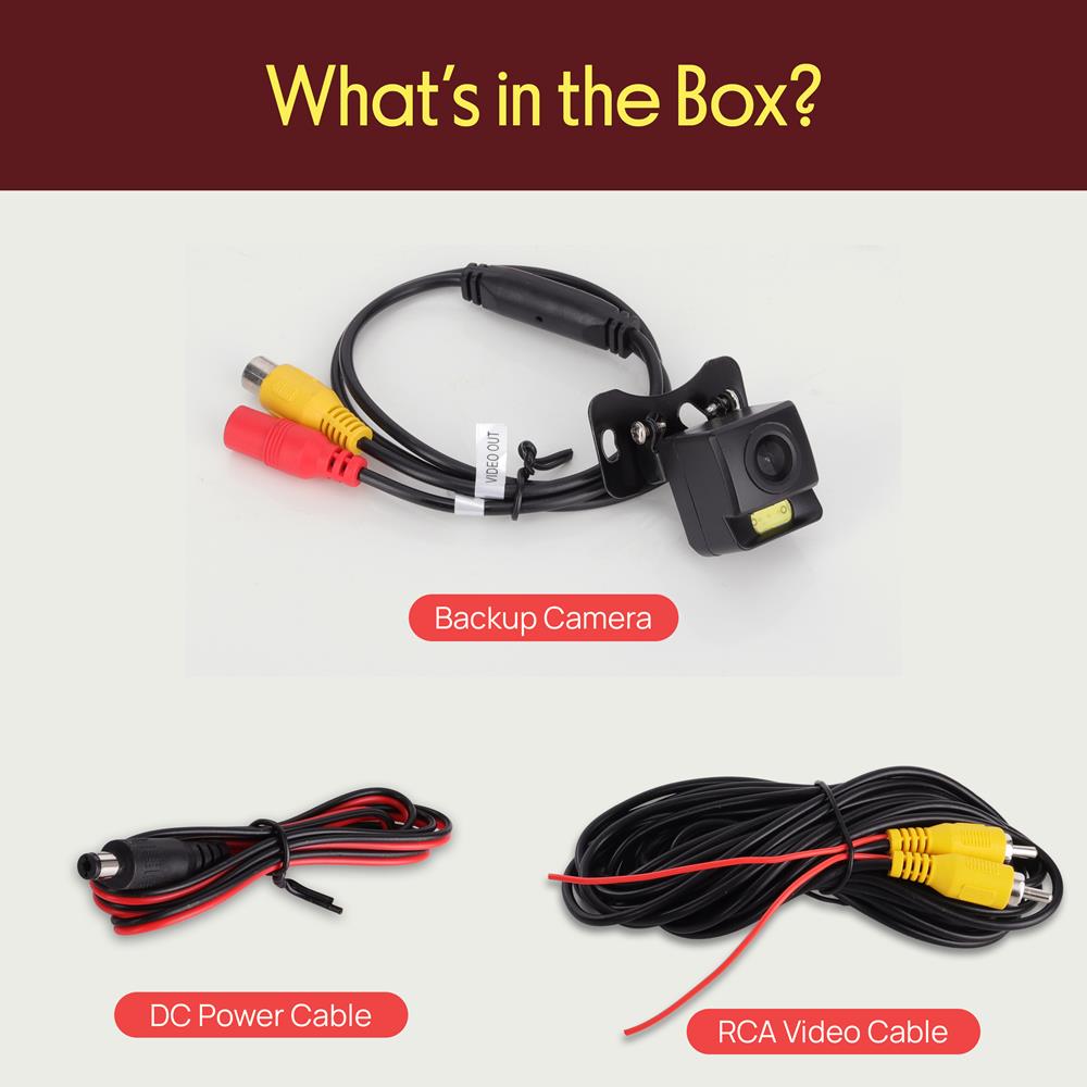 The Pyle Rearview Back-Up Camera - Parking Reverse Cam with Distance Scale Line Display, Night Vision, Waterproof - Rearview Back-Up Cam - Compact Vehicle Camera Style - Universal Mount – Fits All Types of Vehicles - Night Vision Illumination - Distance Scale Line Display for Depth Perception - Waterproof & Weather-Resistant - Marine Grade Camera Construction - Rugged & Durable Metal Housing - Tilt Adjustable Camera Lens Angle - True Color Picture Output - Auto White Balance & Image Adjustment - Used for Car & Automobile, Mobile Vehicle Applications - What’s in the Box: - Backup Camera - DC Power Cable, 3.3’ ft. - RCA Video Cable, 17’ ft.