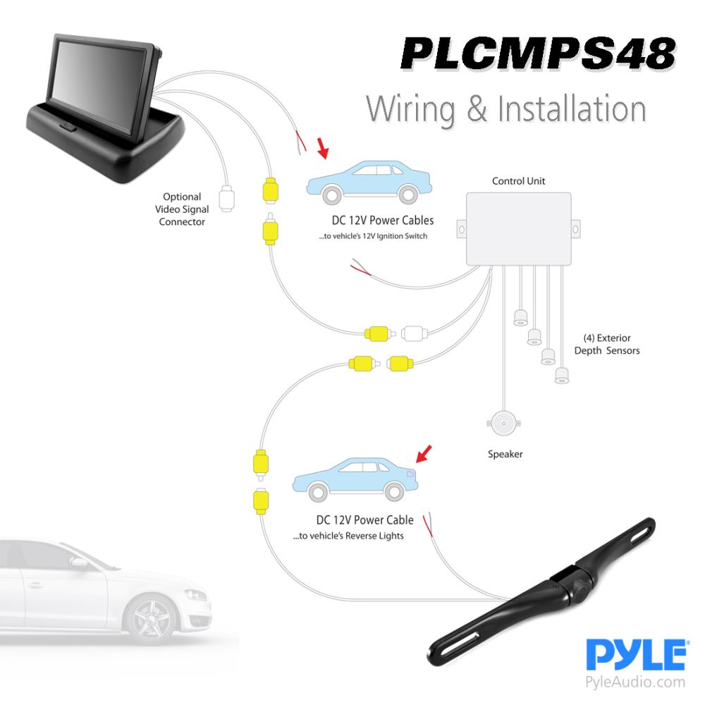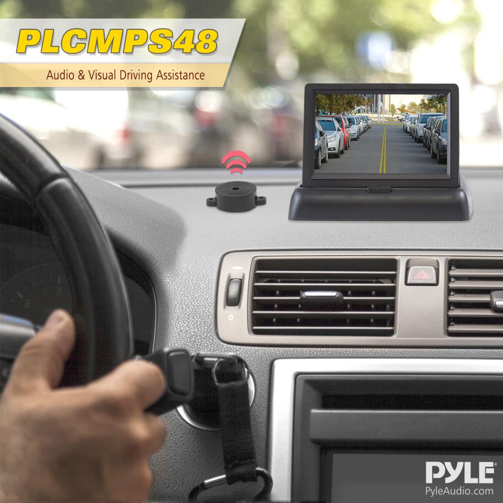 Add an extra line of safety and drive smarter with the Pyle PLCMPS48 Driving Assist System. This backup camera and monitor kit features a speaker with alarm depth sensors that will provide audible alerts of nearby obstacles when reversing. Custom installation setup allows you to mount your camera and monitor exactly where needed for safety, and the pop-out display easily retracts from the housing for convenience. The slim bar-style camera features rugged waterproof construction, along with night vision ability, and is mountable in virtually any location on the outside of your vehicle. System includes all the necessary cables and wiring for installation. Steer clear of bicyclists, watch out for pedestrians and skill your way into those tight parking spots with the Pyle PLCMPS48 Backup Camera & Monitor Driving Assist System.
