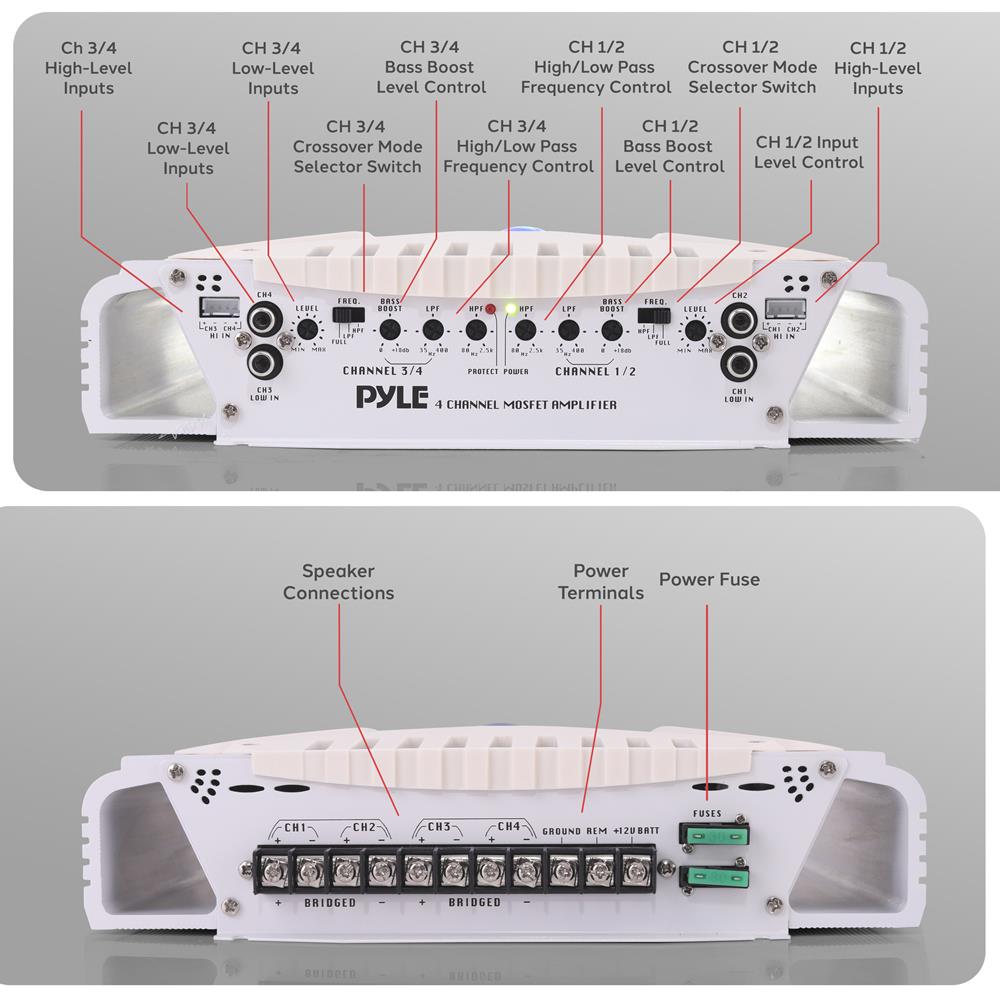 I have amp wired up with a marine fm receiver on 4-6 1/2 " speakers. I have the speaker wires coming off of receiver wired to the two plugs that came with the amp and plugged into the high end crossover spot. The speakers are wired up to the ch.1,2,3,4 terminals. I have the amp power coming off a relay switch. I was wondering why the amp has to have power going to it to for the radio to play through speakers? Why wouldn't the radio just play through the amp just without being amplified? Also is there a way to make it play louder? I thought it being 1000 watts it should be a little louder than it is. Thank you