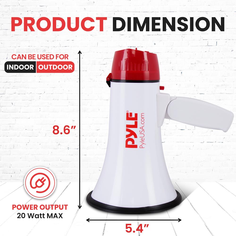 The Pyle PMP20 Megaphone Speaker is compact, portable and powerful! With each iteration of flagship megaphones, Pyle has improved the battery life, power and ergonomic functionality. Control the crowd from a distance with an audio projection range of up to 400 yards. Additional features include switch-activated siren alarm mode, adjustable volume control, along with a convenient folding handle grip -- and it’s all housed in a compact battery operated design (requires (4) x ‘C’ batteries, not included). Enjoy lightweight and versatile PA speaker control with the Pyle Compact Megaphone.