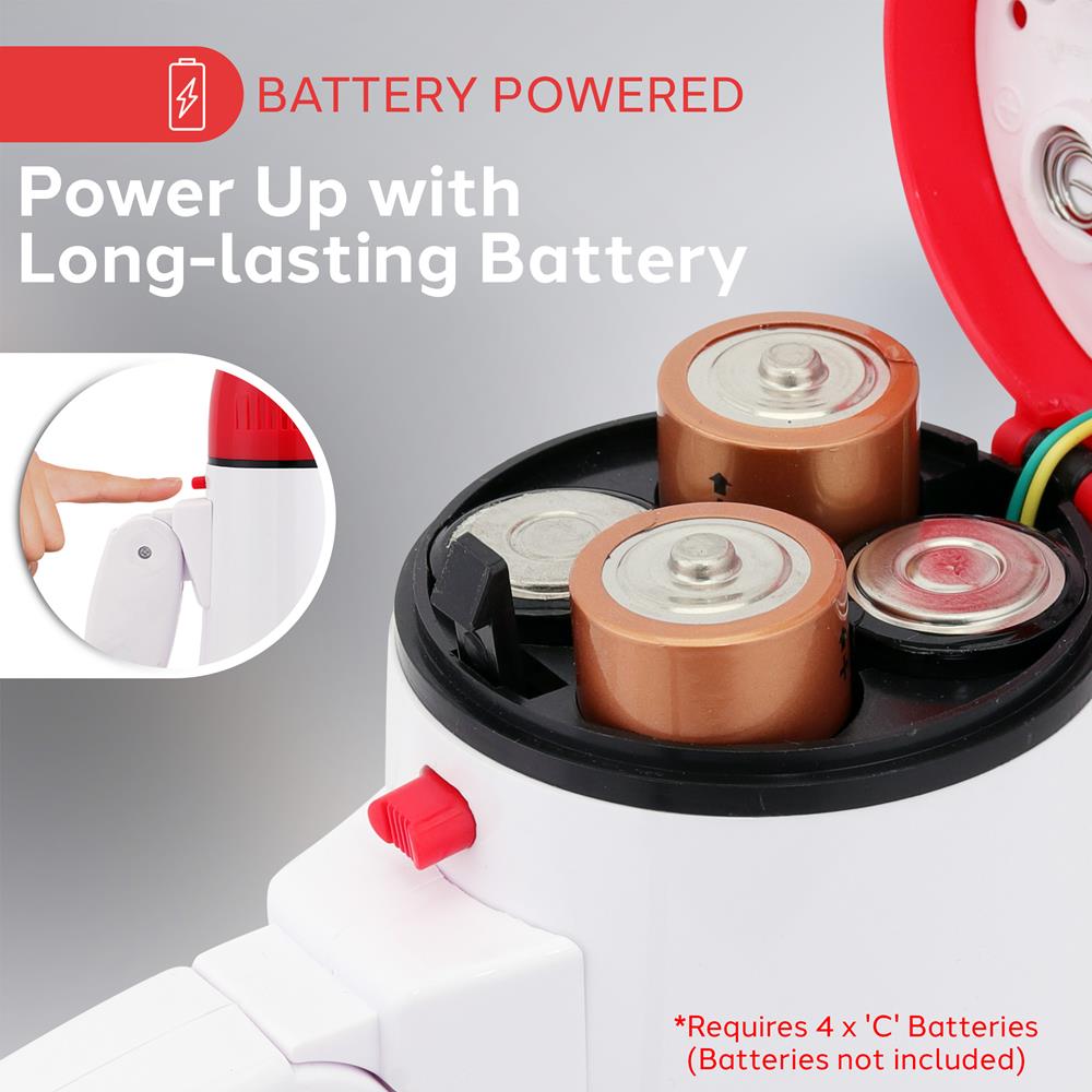 • Battery Powered by 4 x 'C' Batteries, Not Included