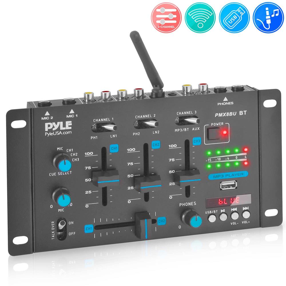 Professional 3-Channel Wireless DJ Mixer with Bluetooth, USB, and