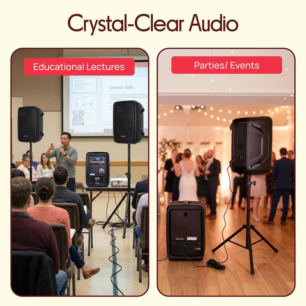 - Active 2-Way, Full Range Stereo Sound