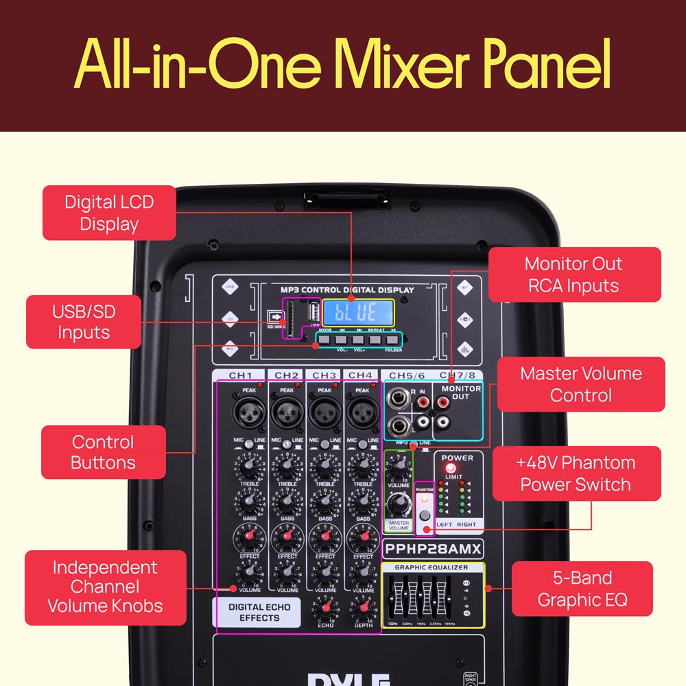 - (2) 1/4'' Microphone / Guitar Inputs