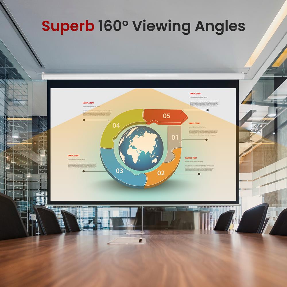 The Pyle PRJSM Universal Projection Screens are an excellent choice for use as display screens. The matte white viewing surface easily rolls down and comes equipped with an auto locking feature so you can easily adjust the height as you wish. The black masking border allows you to properly align and focus your projections for optimal viewing. Lightweight and durable, the screen is easy to install and easy to use. You'll be able to project in minutes, simply hang it up and roll it down.