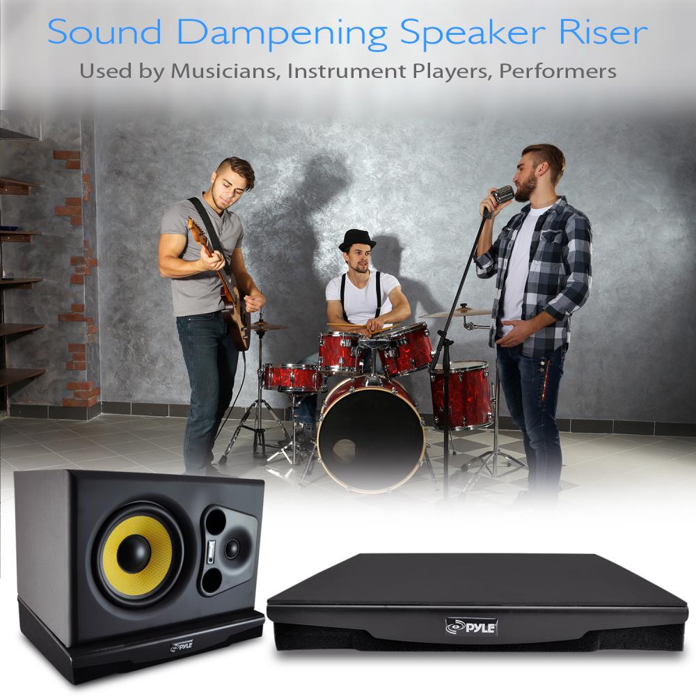 The Pyle Sound Dampening Speaker Riser helps to achieve optimal audio performance. The lab-tested and engineered foam isolator platform helps to eliminate unwanted levels of audio resonance while promoting the flow of 'clean' speaker sound projection. Speaker stabilization, noise-isolation and sound dampening absorption give your audio frequencies free-flow ability, with more natural bass clarity. High-density foam construction and universal speaker compatibility effectively stabilize and reduce recoil for any audio application -- whether on stage or in the studio. Fill your acoustic environment with accurate audio reproduction with the Pyle Sound Isolating Speaker Dampener.