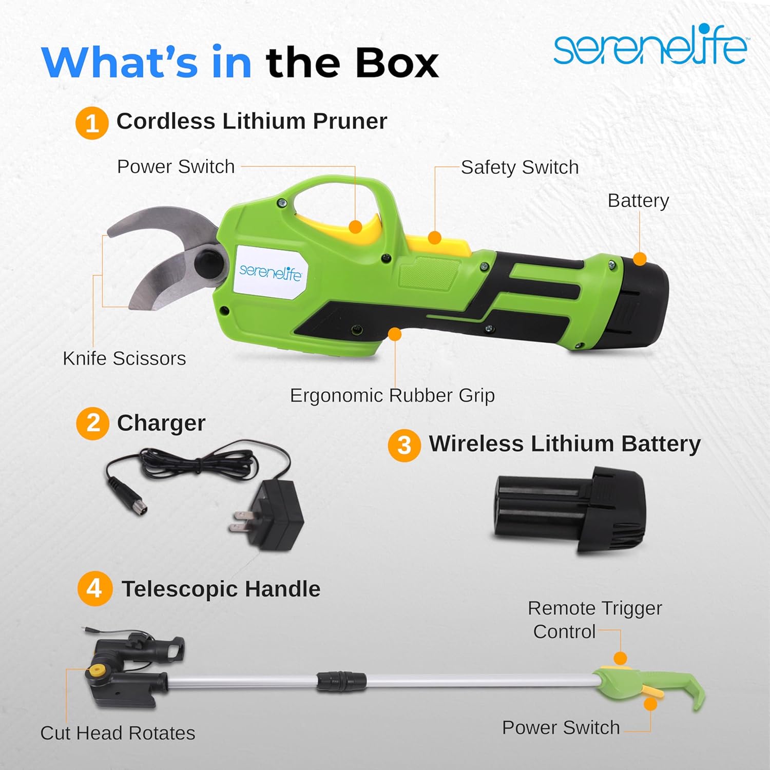 - Cuts Per Full Charge: 0.3’’ -inch branch: 800 cuts, 0.4’’ -inch branch: 700 cuts, 0.6’’ -inch branch: 300 cuts, 0.7’’ -inch branch: 200 cuts, 0.8’’ -inch branch: L 80 cuts