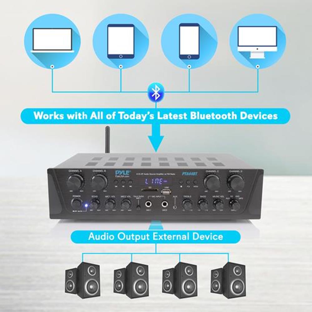 4-Channel Bluetooth Home Audio Amplifier with FM Radio