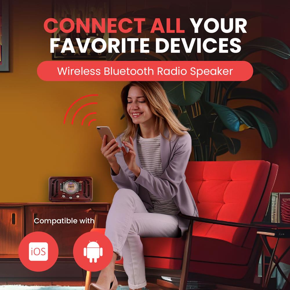Retro Bluetooth Radio Speaker - Vintage Style, Wood, USB/SD, AM/FM Tuner