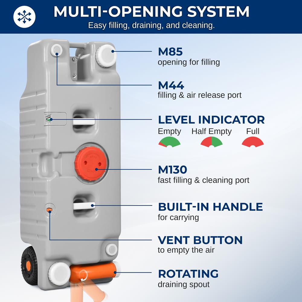 - Carries 75 Liter of Freshwater and Sewage for RV