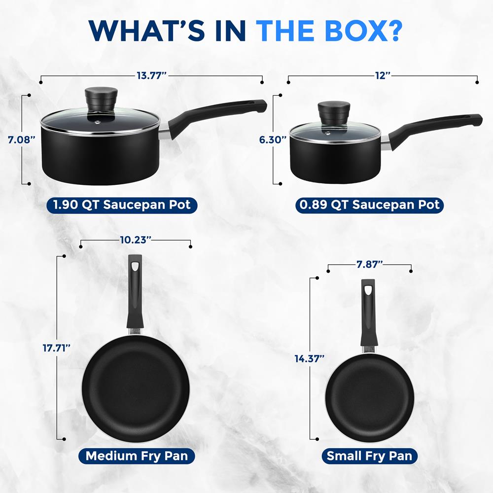 6-Piece Nonstick Cookware Set - Even Heat, Durable Coating, Black