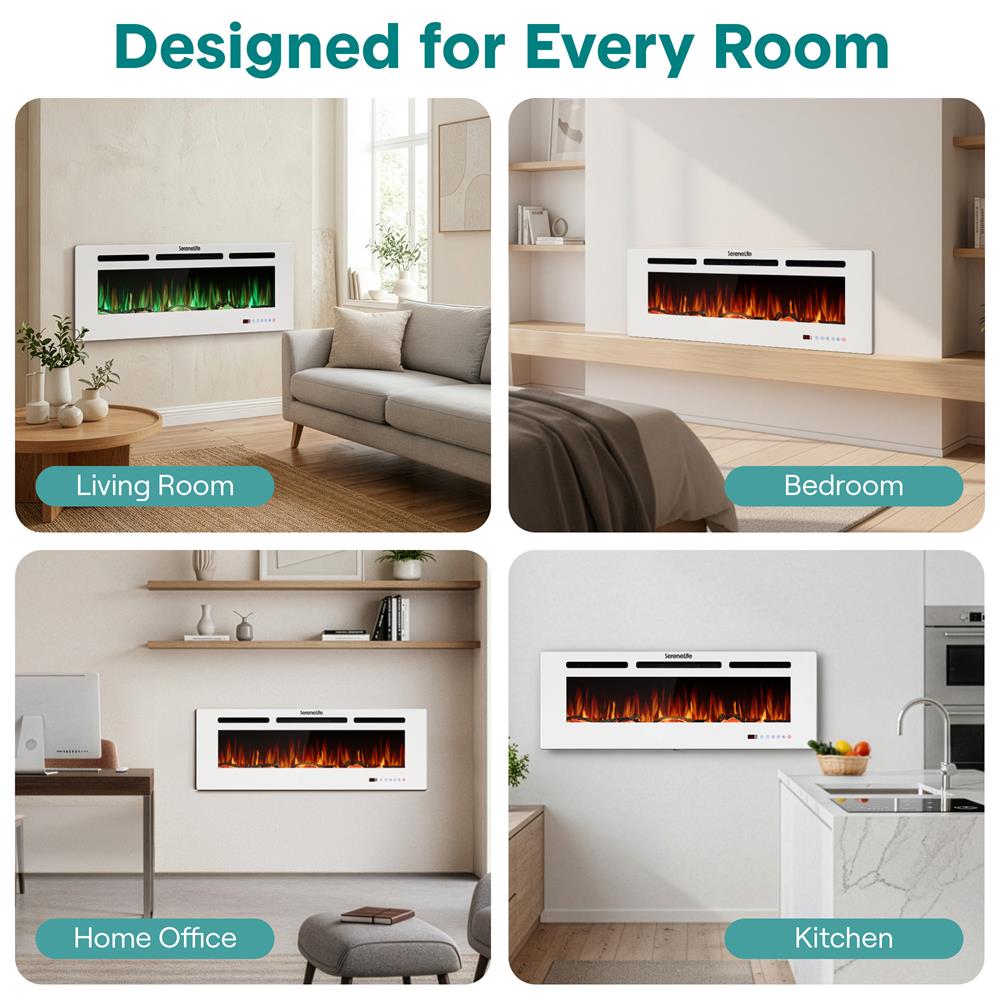 - Wall-mounted and Recessed Fireplace with Crystal Decoration