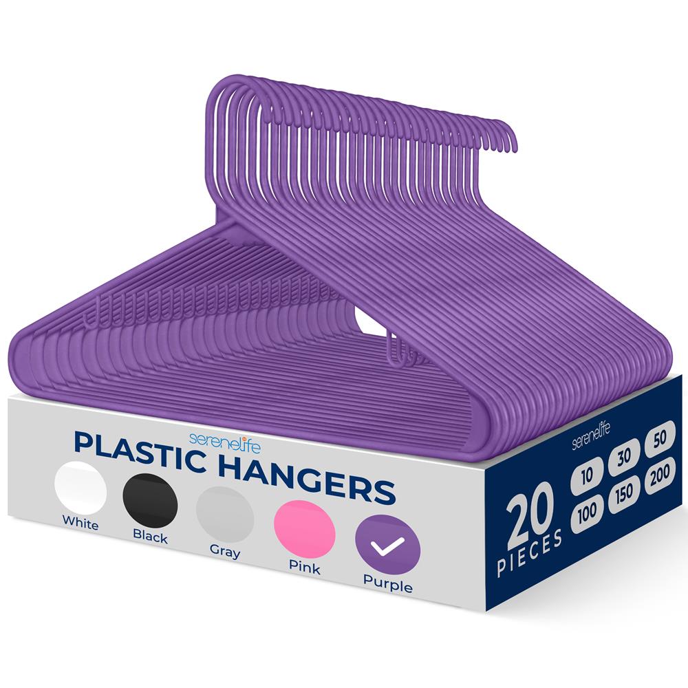 20 Pack Non-Slip Plastic Hangers, Space-Saving, 360° Swivel Hook, Purple