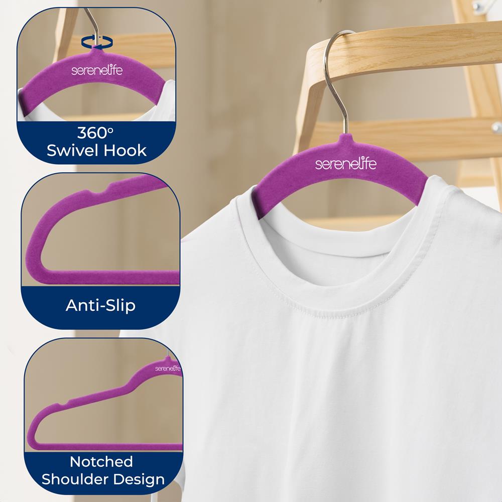 50 Pack Velvet Hangers - Non-Slip, Space-Saving, 360° Swivel Hook, Purple