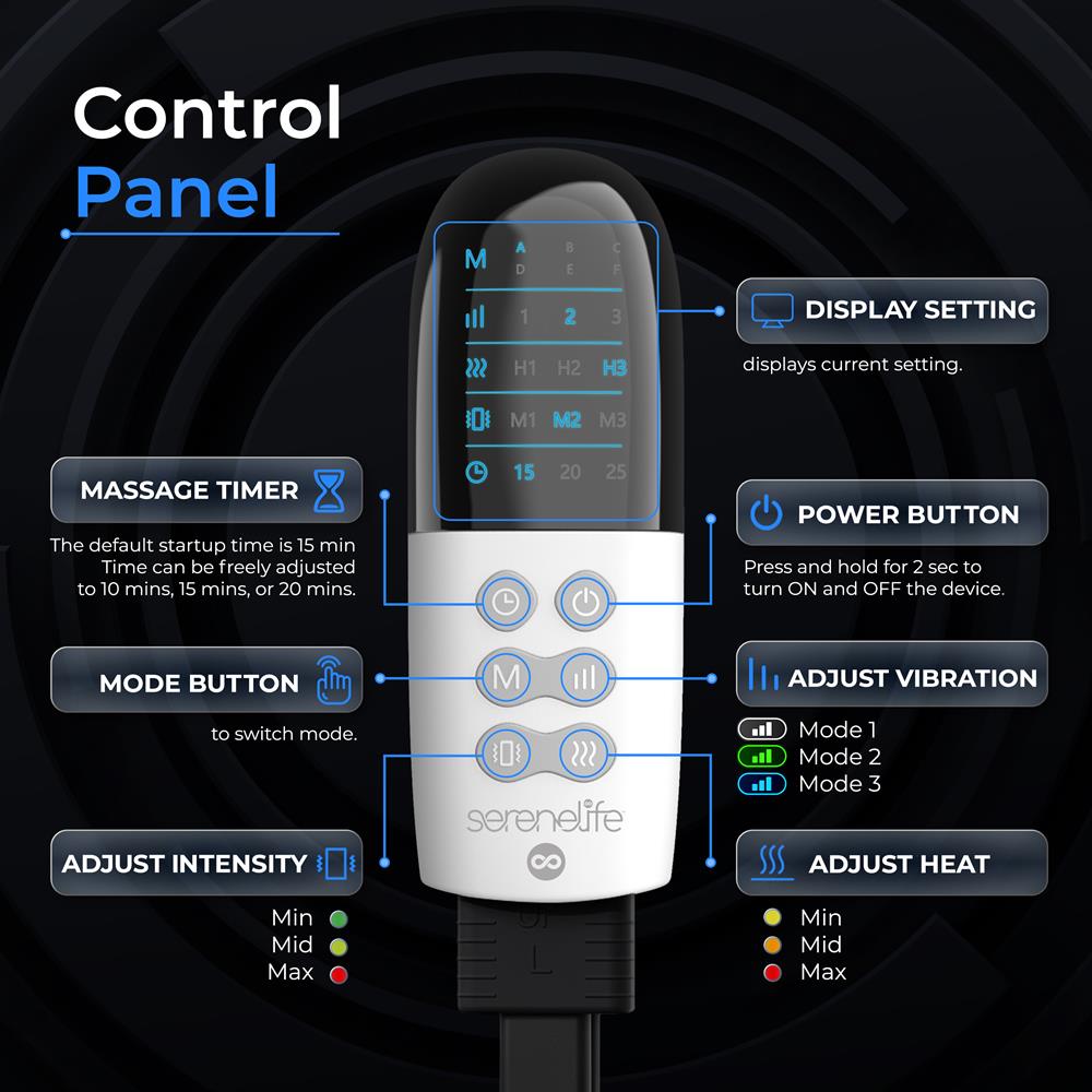 - Smart Control for Intensity Levels, Modes and Heating Options
