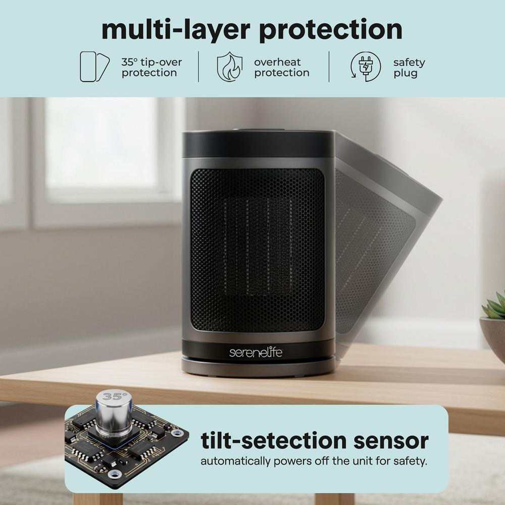 - Overheat Protection, Tip-Over Protection, and Safety Plug