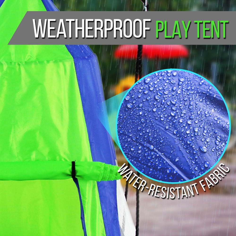 - Construction Materials: Polyester Play Tent, Steel tube Metal Swing Frame