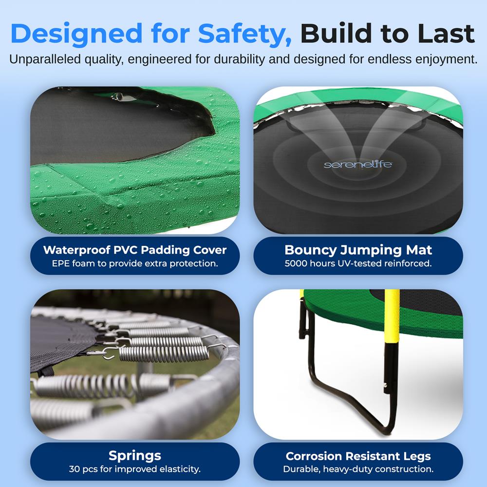 - Trampoline Style: Outdoor, Indoor, Safety Net, Basketball Hoop, Round Trampoline