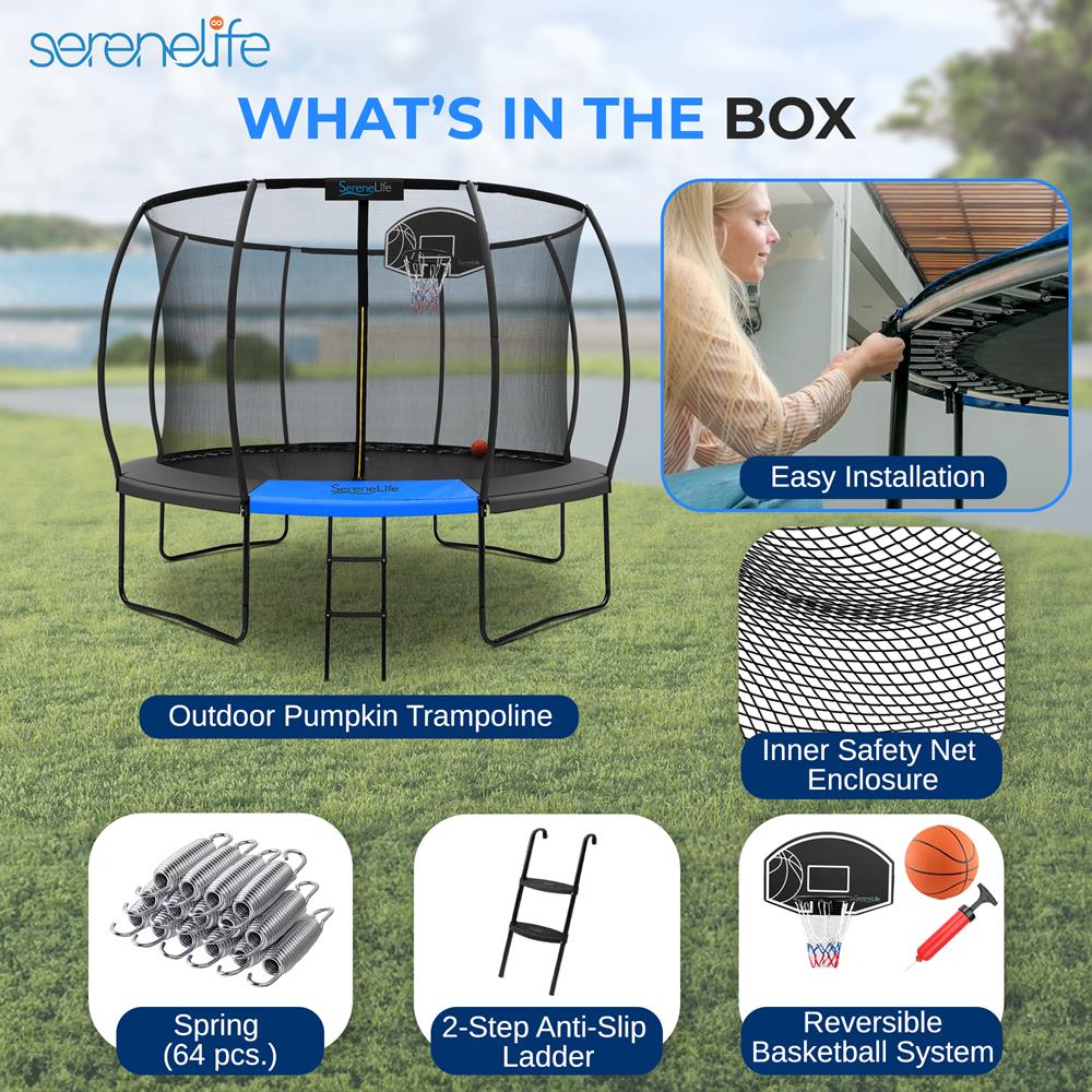- Trampoline Style: Outdoor, Backyard, Pumpkin-shaped, Inner Enclosure