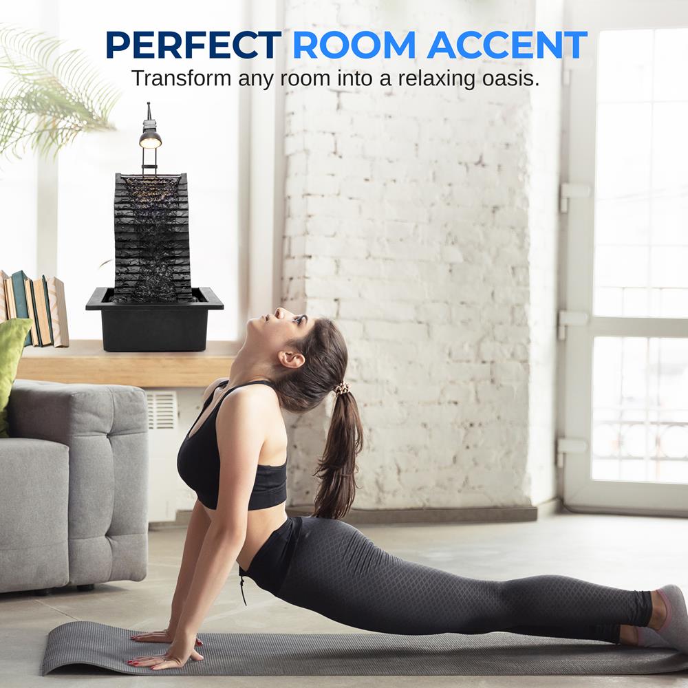 The SereneLife Water Fountain - Relaxing Tabletop Water Feature Decoration - Compact Tabletop Fountain - Soothing & Relaxing Water Flow - Hassle-Free & Simple Plug-in Operation - Subtle LED Illuminated Lighting Effect - Built-in Pump Continuously Circulates Water - Water Pump Features Adjustable Water Flow Rate - Perfect Decorative Accent for Any Room in the House - Can be Used for Indoor/Outdoor Table Placement - Low-Voltage Energy Efficient Design - *UL Listed: Safety Tested and Certificate Approved - What’s in the Box: - Water Fountain - Power Adapter - Technical Specs: - Power Cable Length: 6’ ft - Supply Power: 110V (12V Power Adapter) - Dimensions (L x W x H): 11.0’’ x 8.3’’ x 6.7’’ -inches.