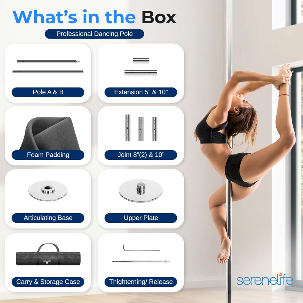 Adjustable Non-Slip Dancing Pole Set, Steel, Chrome Finish